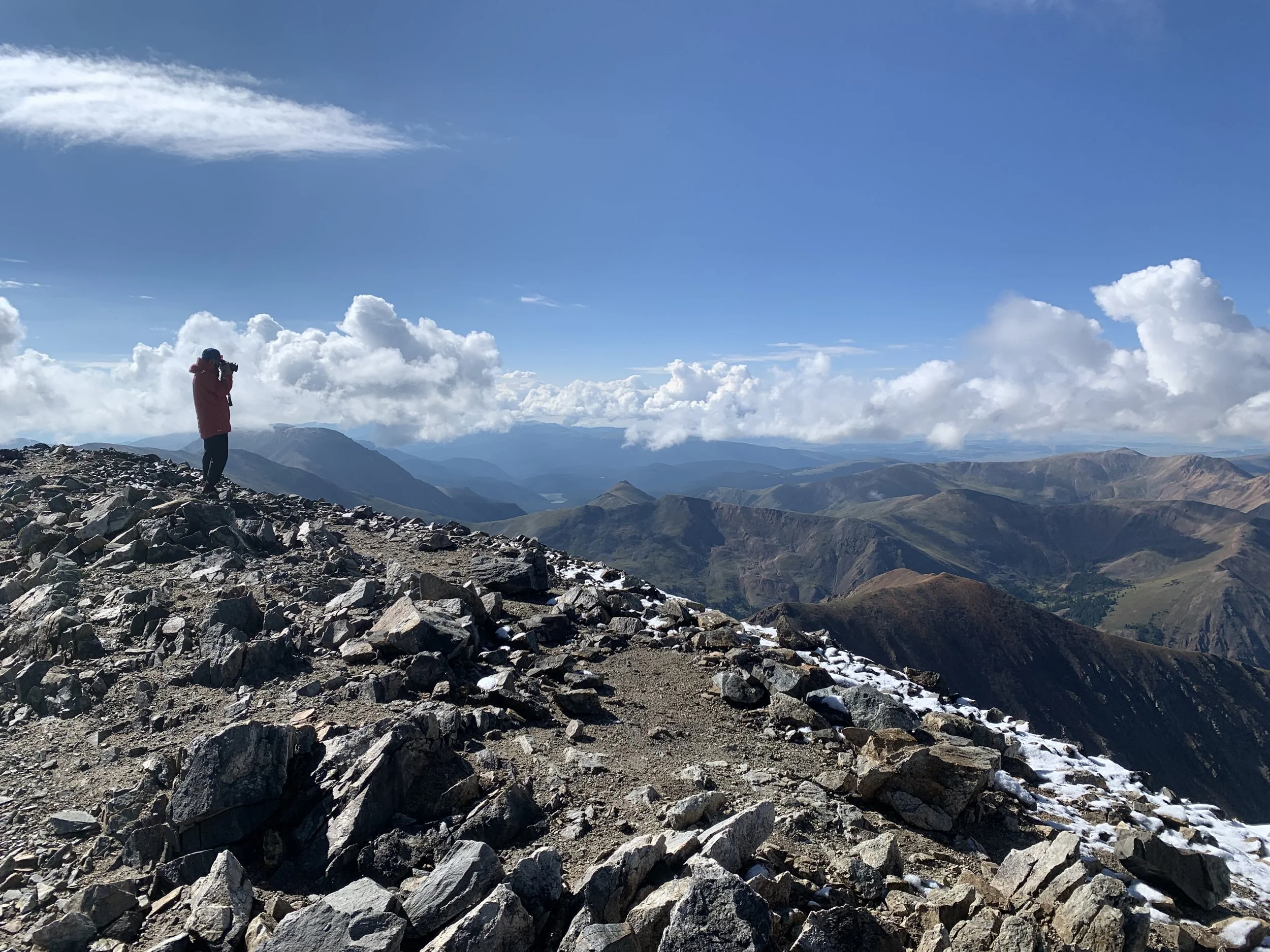 Mt Blue Sky’s sister peak is slightly longer and slightly harder, but still a great choice for beginners. The hike to the top of Bierstadt starts at the scenic Guanella Pass Trailhead at about 11,600’ in elevation, giving you a nice leg up to the summit. Like Blue Sky, Mt Bierstadt’s proximity to Denver makes it a popular choice for peak baggers, so be sure to plan accordingly to ensure a parking spot. I first summited Bierstadt on a weekday in late September, and we only encountered a handful of other folks on the trail.